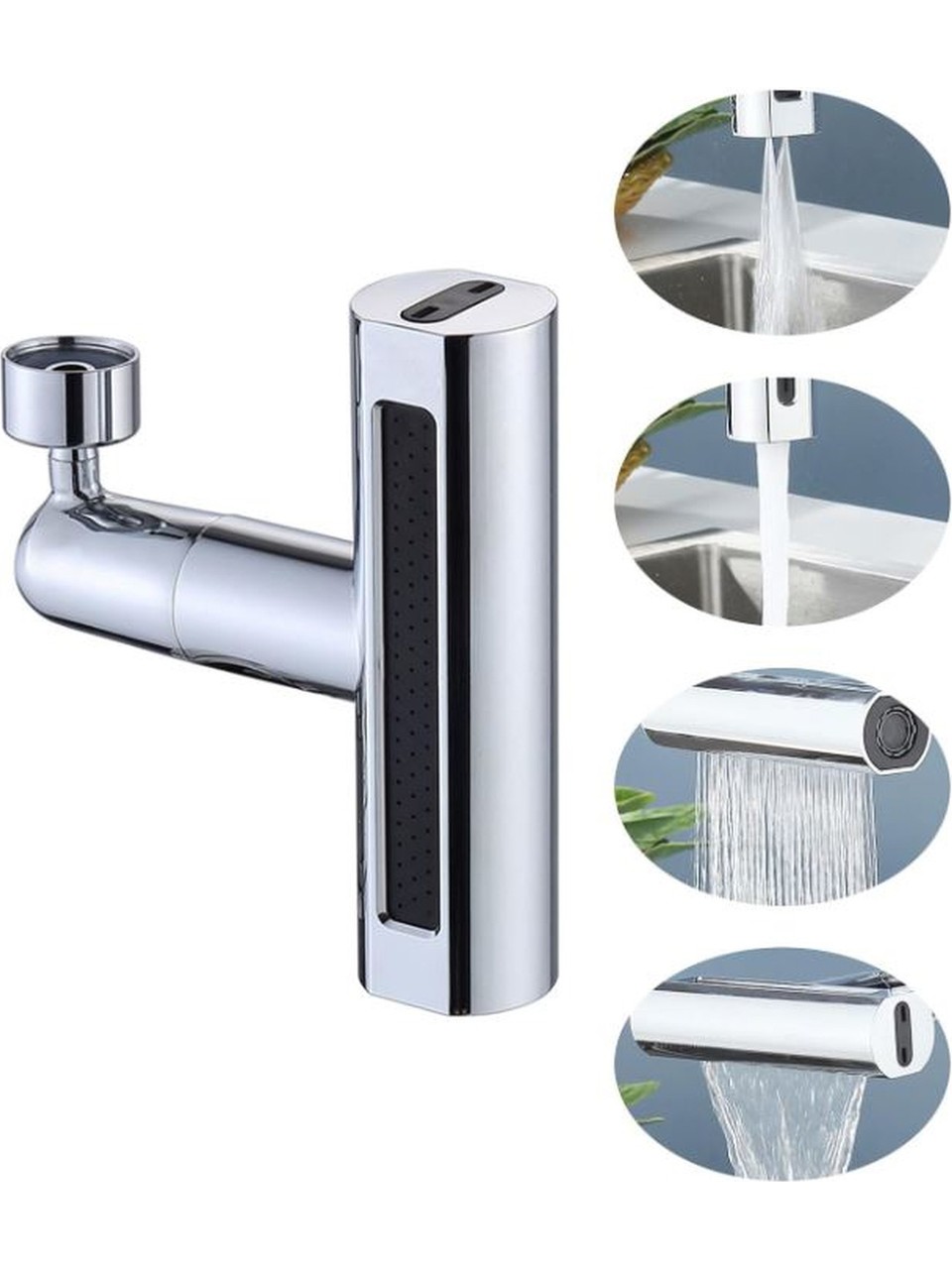 4 Modlu Şelale Ayarlanabilir Musluk Başlığı Aradığınız ürün olarak suya istediğiniz gibi yön verebilecek ve tasarruf sağlayabileceksiniz. Sonsuzluğa dönen fonksiyonu ile 4 farklı mod arasında geçiş yapabiliyorsunuz. Mutfağınızda gıda yıkamak yada bulaşık yıkamada size avantajlar sunacak olan bu üründen memnun kalacağınızı umuyoruz. Banyoda da kullanıma elverişlidir. Kullanmak istediğinizi modlar ile daha etkin yıkama yapabilirsiniz. Daha detaylı bilgi için videomuzu ve görsellerimizi inceleyiniz. Tüm musluk başlıklarına uyum sağlaması için gerekli olan tüm aparatları yanında gönderiyoruz. 4'ü 1 arada işlevsellik : Bu ürün, bir mutfak lavabo musluğu, evrensel döner duş başlığı ve bir sıçrama geçirmez 360 derece rotasyon özelliği de dahil olmak üzere 4'ü 1 arada bir işlevsellik sunar. • Evrensel döner tasarım : Duş kafasının evrensel döner tasarımı, çeşitli banyo ve mutfak ihtiyaçları için uygun hale getirerek kolay ve rahat kullanım sağlar. • Sıçrama geçirmez özelliği : Sıçrama geçirmez bir özellik ile donatılmış olan bu ürün, mutfağınızda veya banyonuzda temiz ve düzenli bir ortam sağlar. • Dayanıklı malzeme : Yüksek kaliteli plastikten yapılmış, bu ürün dayanıklı ve uzun ömürlü, uzun süre güvenilir performans sağlar. • Kolay kurulum : Kullanıcı dostu tasarımı ile bu ürün kolayca kurulabilir ve evinize veya ofisinize uygun bir ek haline getirilebilir. • Kompakt boyut : Kompakt boyutu, küçük alanlar için ideal bir seçimdir, ancak daha büyük bir ürünün tüm işlevselliğini sunar.